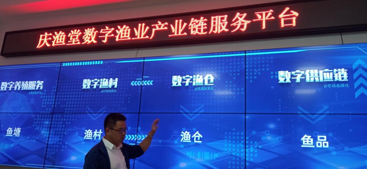 (浙江庆渔堂董事长沈杰博士在向调研团队介绍企业业务,沈杰博士毕业自中科院,是国内物联网研发领域顶尖人才之一。)